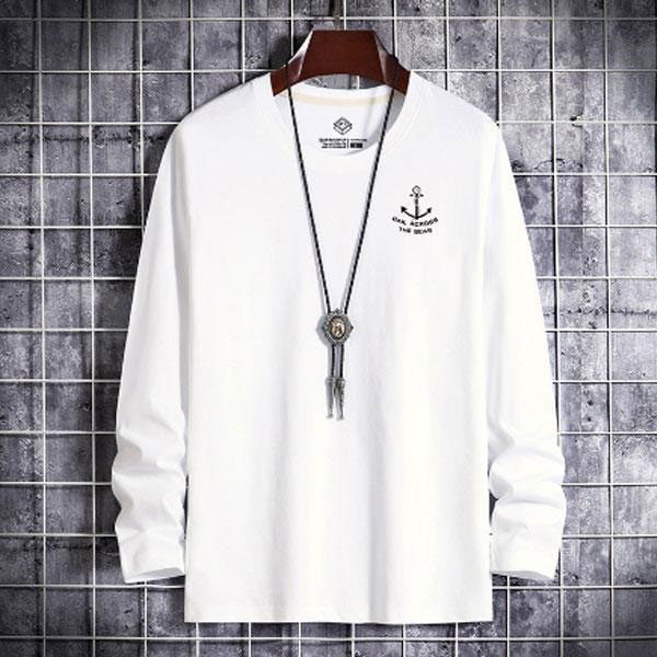 メンズ カジュアル 長袖Tシャツ 8カラー 9サイズ コットン素材 快適 着心地 ラウンドネック 胸元プリント シンプル ベーシッ...