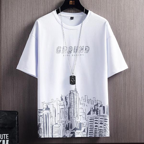 メンズ 半袖 プリント Tシャツ 2カラー 7サイズ ポリエステル素材 都会の街並み トップス インナー シンプル カジュアル お...