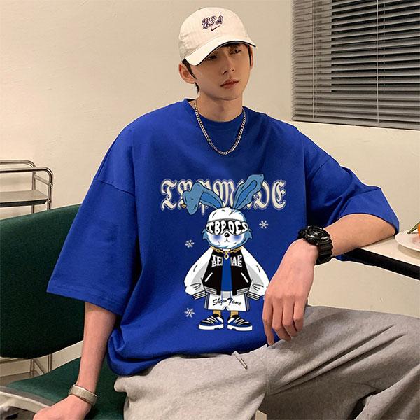 メンズ 半袖 Tシャツ トップス カットソー ウサギ フロント プリント ビッグシルエット ルーズ ストリート系 スケーター 韓国...