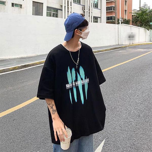 メンズ 半袖 Tシャツ ビッグプリント 大きいサイズ ビッグシルエット ストリート系 スケーター ゆったり ドロップショルダー 夏
