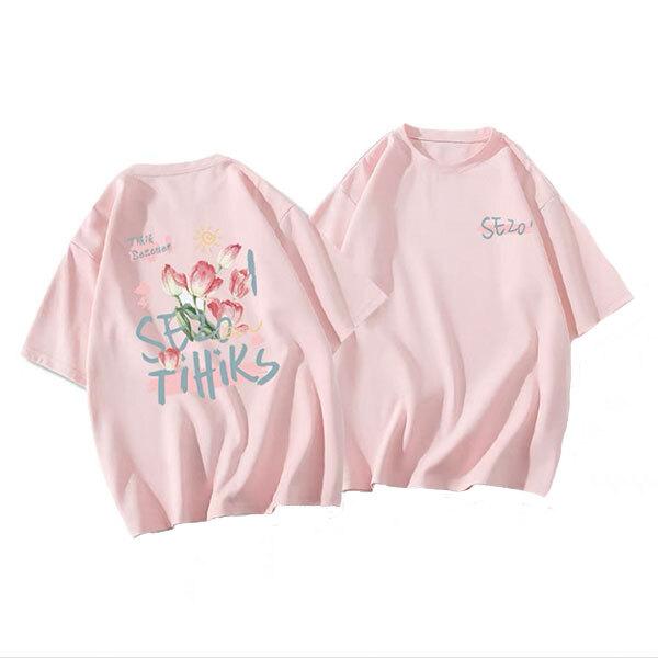 レディース 花柄プリント 半袖 Tシャツ カットソー トップス オーバーサイズ ゆったり カジュアル ラフ 可愛い シンプル お洒...