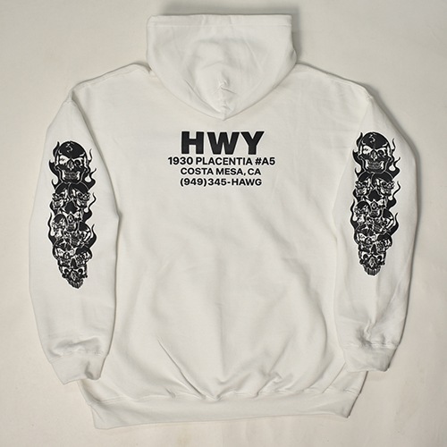 HWY×US/Skull Flames Pullover Hoodie(エイチダブリューワイ×アス スウェットパーカー)ホワイト ...