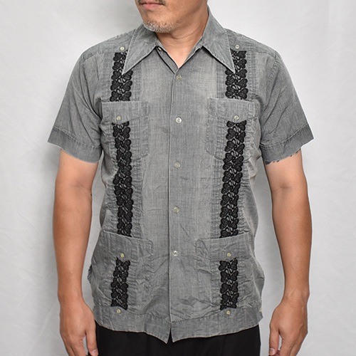・US Customized Over Dyed S/S Guayabera Shirt(オーバーダイキューバシャツ)ブラック/サ...
