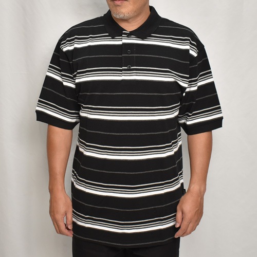 Cal Top/Striped S/S Polo Shirt(キャルトップ ポロシャツ)ブラックボーダー [a-8062]
