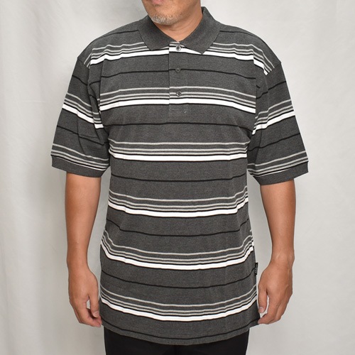 Cal Top/Striped S/S Polo Shirt(キャルトップ ポロシャツ)チャコールボーダー [a-8063]