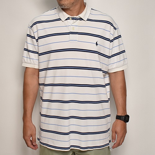 ・Polo Ralph Lauren/S/S Border Polo Shirt(ラルフローレン ポロシャツ)ホワイト×ブルー/サ...
