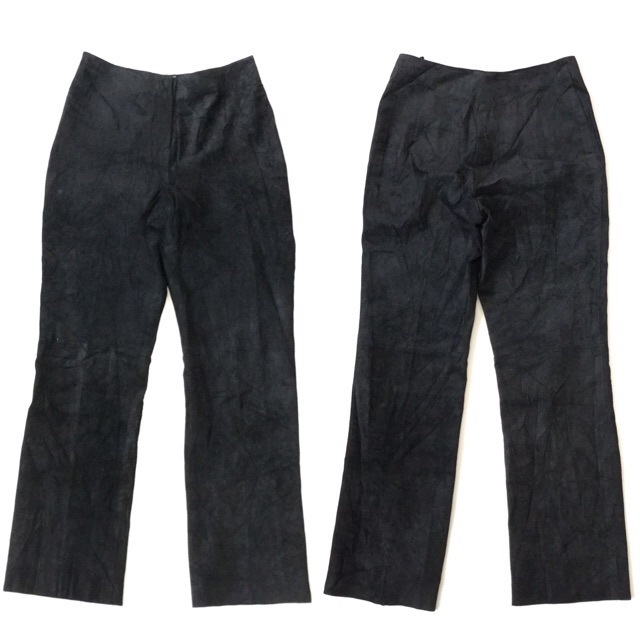IRKA 国内古着 レザーパンツ スエード 型押し 本革 送料無料 レディース W66/黒・ブラック 花柄 ボタニカル ペーズリー...