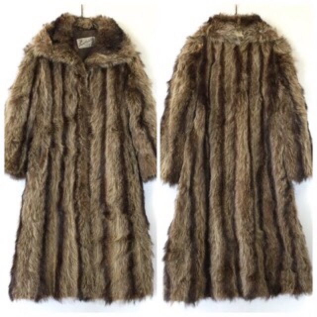 David Hochstein フェイクファー ロングコート アメリカ古着 送料無料 レディース s-m程度/茶系 毛皮コート ア...