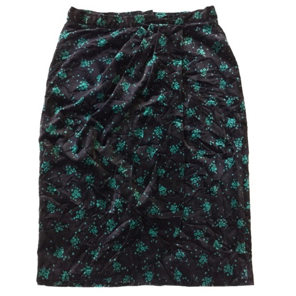 アメリカ古着 ベロアスカート タイトスカート 送料無料 レディース W80/黒x緑 小花柄 別珍 オールドアメリカ アメカジ モー...