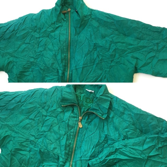 FUDA international アメリカ古着 シルクジャケット ジップアップジャケット 送料無料 レディース M/緑・グリー...