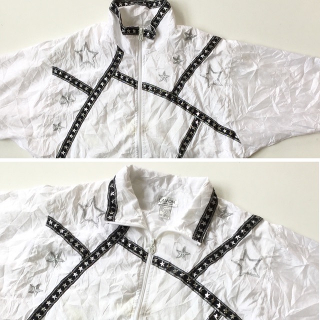 LAVON ポリジャケット アメリカ直輸入 ウィンドブレーカー 送料無料 レディース S/白・ホワイト 星 リボン テープ USA...