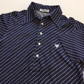 DUNLOP ダンロップ 半袖ポロシャツ 国内古着 送料無料 メンズ L/紺x白 ストライプ レトロ柄 ゴルフ スポーツ カジュア...