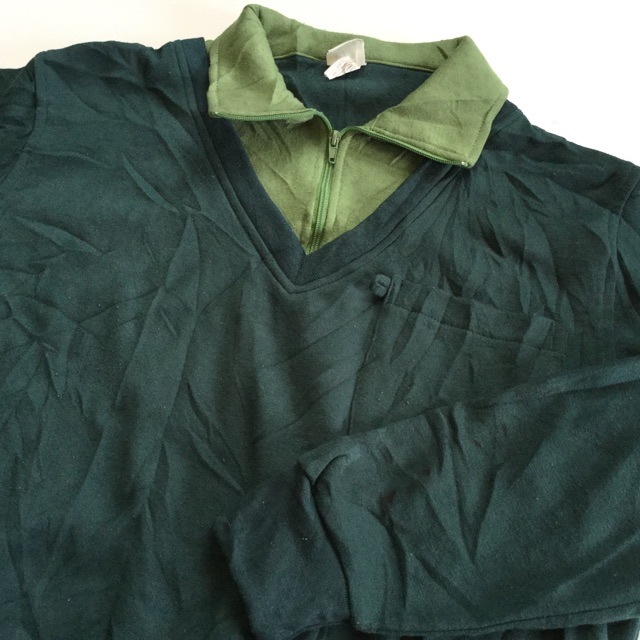 HABAND 長袖スウェット アメリカ直輸入 ハーフジップ プルオーバー 送料無料 メンズ L/緑x黄緑 襟付き 無地 ワーク カ...
