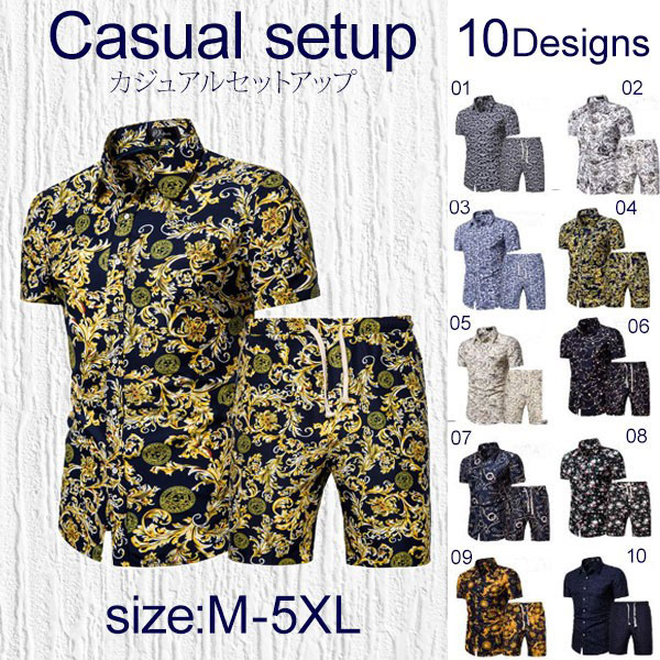 シャツ パンツ 上下2点セット メンズ 半袖 開襟 カジュアル 花柄シャツ セットアップ おしゃれ ビーチ 夏 総柄プリント