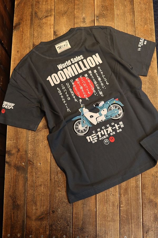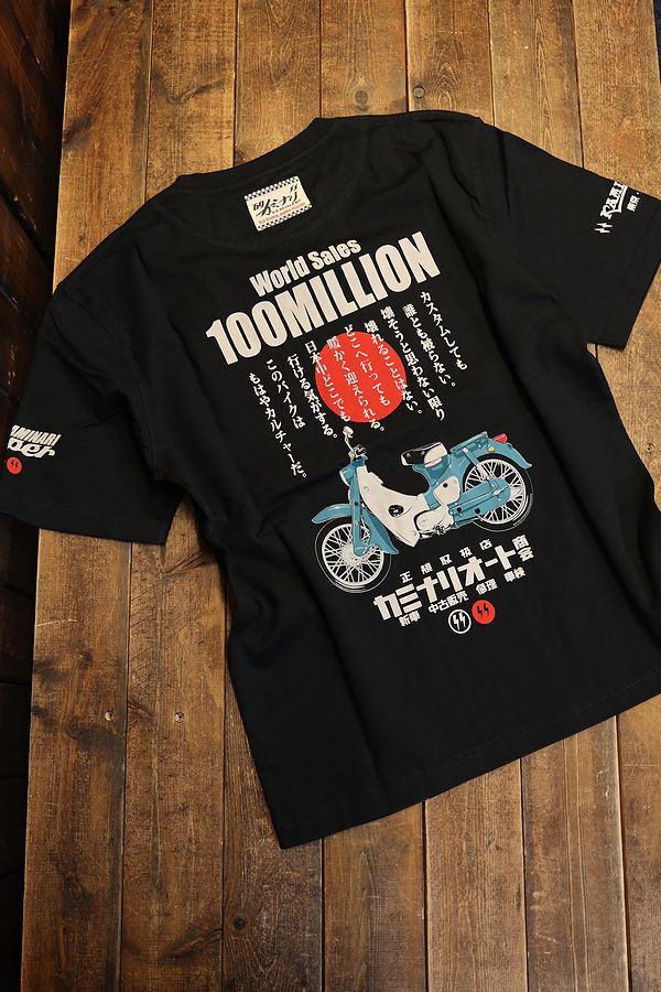エフ商会 カミナリ KMT-250 1億台 ホンダ スーパーカブ C100 C105 Tシャツ ブラック