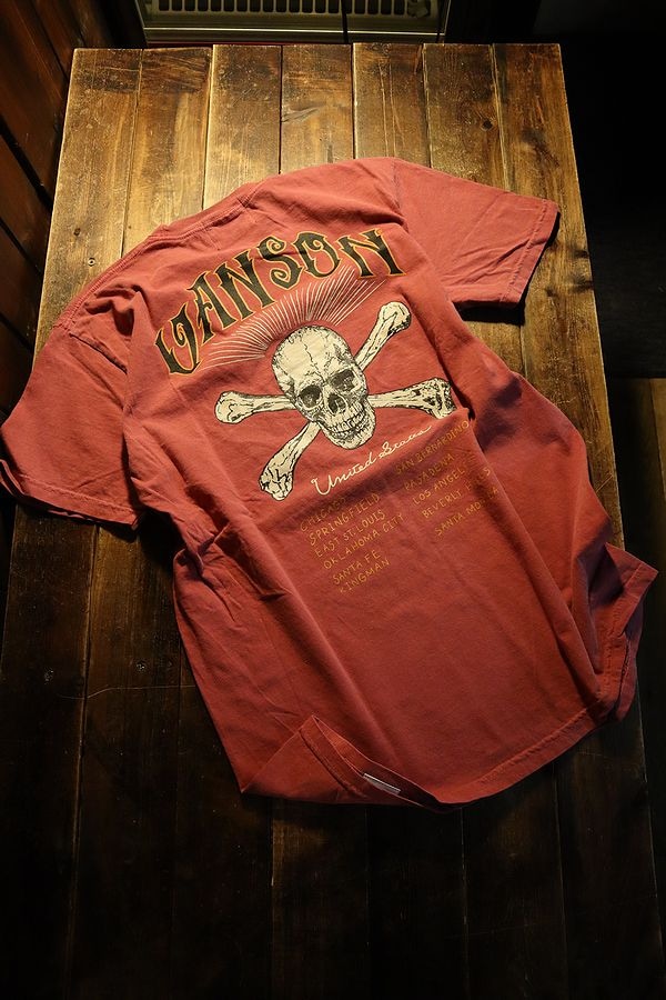 VANSON バンソン NVST-2316 天竺ピグメントダイ半袖Tee スカル クリムゾンレッド