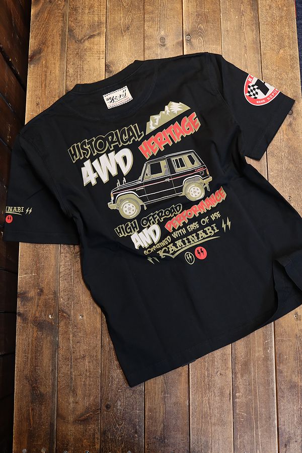 エフ商会 カミナリ KMT-253 歴史遺産車 パジェロ Tシャツ ブラック