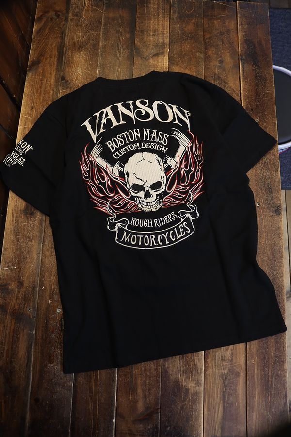 VANSON バンソン NVST-2320 天竺半袖Tee スカル刺繍 Tシャツ ブラック