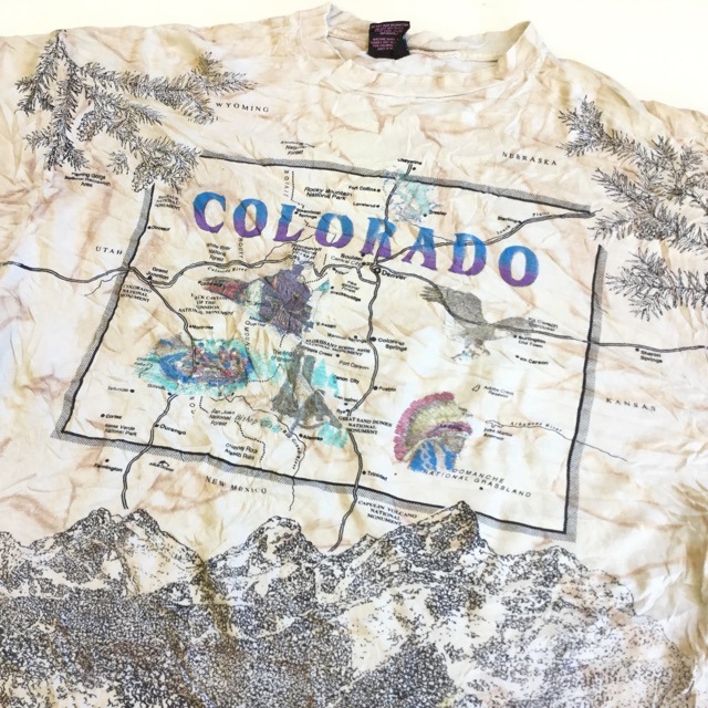 COLORADO コロラド マップ Tシャツ アメリカ直輸入 ムラ染め 半袖Tシャツ 送料無料 メンズ XXL/薄茶系xムラ染め ...