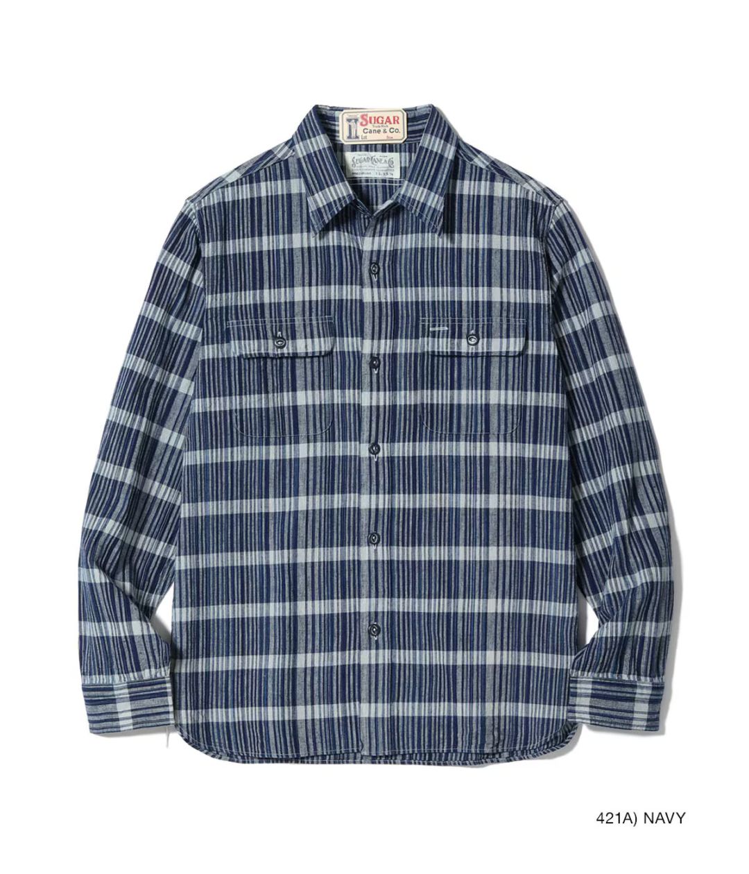 【SUGAR CANE /シュガーケーン】FICTION ROMANCE 5oz. INDIGO CHECK WORK SHIRT...