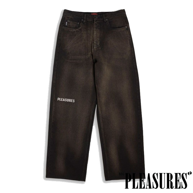 【PLEASURES/プレジャーズ】OIL BAGGY JEANS デニムパンツ / DARK BROWN