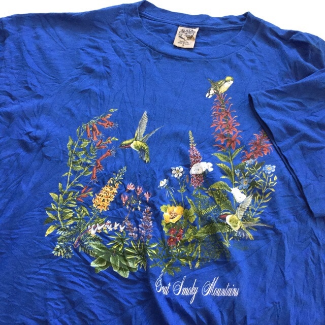 Great Smoky Mountains ハチドリ 半袖Tシャツ アメリカ直輸入 送料無料 XL/青・ブルー MADE IN U...