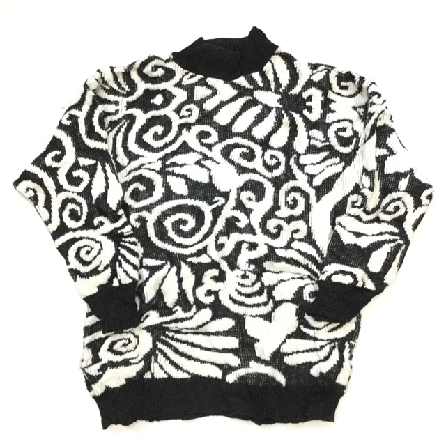 ADELE KNIT WEAR アメリカ直輸入 総柄セーター アクリルニット 送料無料 レディース L程度/黒x白 モノトーン 柄...