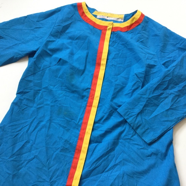 アメリカ古着 シャツワンピース ワークシャツ 送料無料 レディース M/水色x黄色xオレンジ 無地 ライン シャツドレス ロングシ...