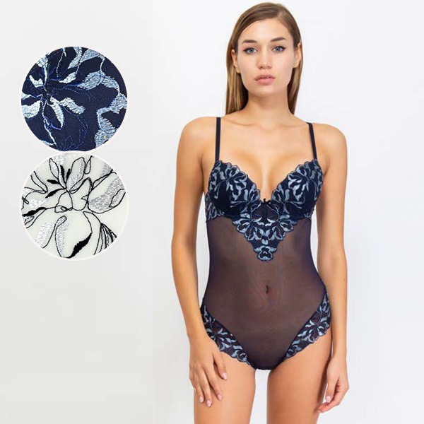 イタリア インポート ブランド ランジェリー SieLEI LIBERTY 7448 刺しゅうレースとチュールのシースルーボディ...