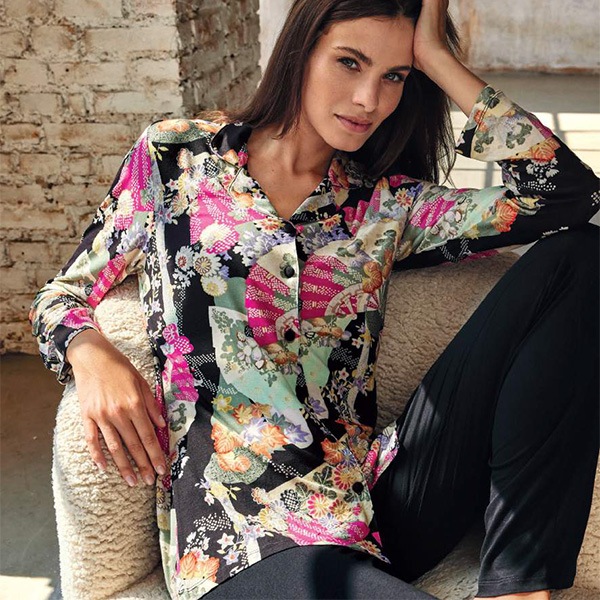 イタリア インポート ブランド パジャマ LORMAR MADAMME 650985 花柄フロントボタンパジャマ 2色