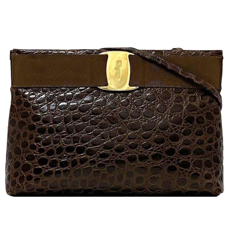 サルヴァトーレ フェラガモ ショルダーバッグ ec-22603 ブラウン ヴァラ 美品 レザー 中古 BZ-210588 Salv...