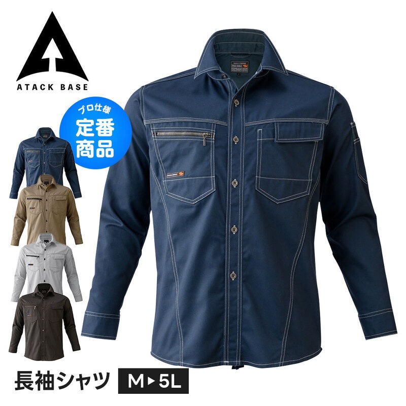 アタックベース 作業服 シャツ メンズ 長袖 秋冬 作業着 デニム 春 通年 ストレッチ 大きいサイズ 制服 ユニフォーム ワーク...