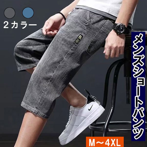 メンズ デニムショートパンツ 膝丈 ボトムス 短パン ショートパンツ クロップドパンツ イージーパンツ ウエスト調節 動きやすい ...