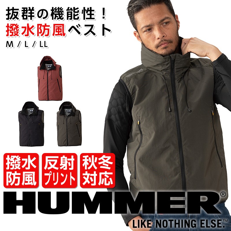 防寒ベスト HUMMER 撥水防風ベスト フード付き アウトドアベスト