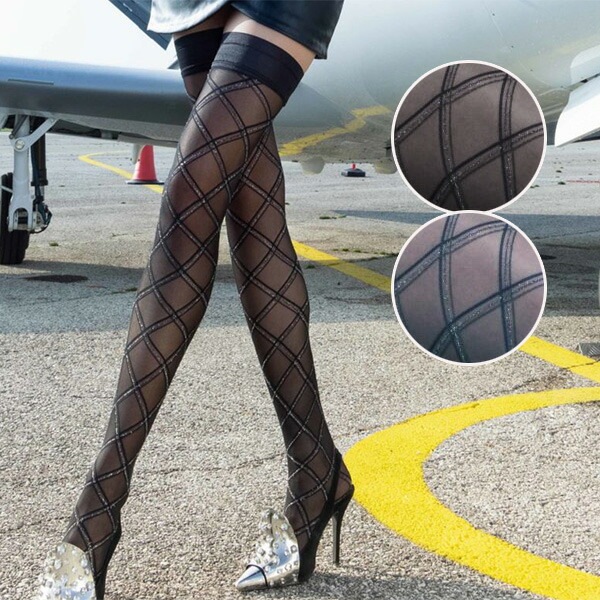 イタリア インポート ブランド ラメ柄ガーターストッキング TRASPARENZE PHUKET チェック柄ラメガーターストッキン...