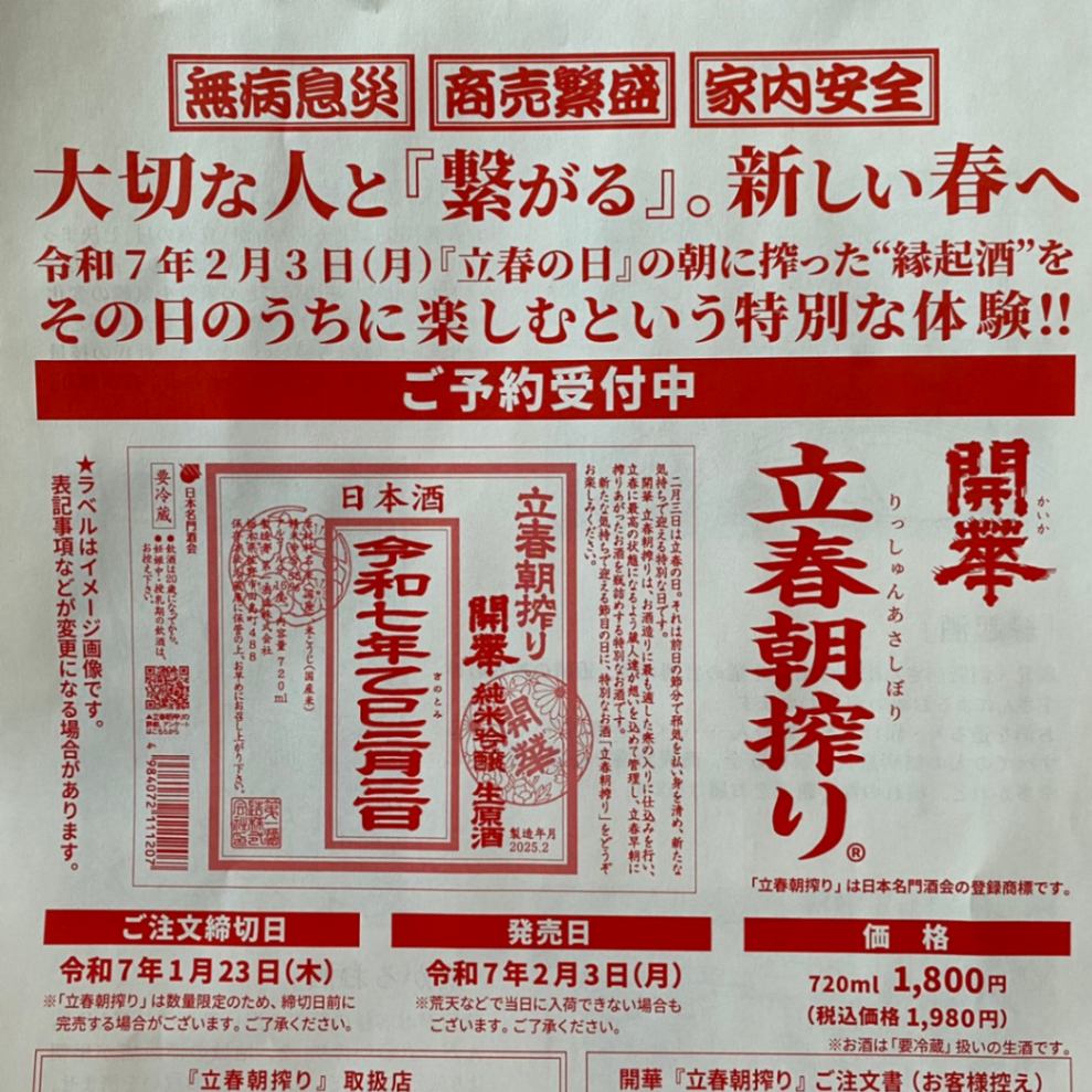 縁起酒 開華立春朝搾り 純米吟醸 生原酒