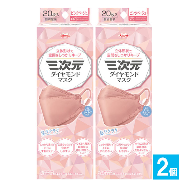 三次元ダイヤモンドマスク ピンクベージュ フリーサイズ 20枚入×2個セット【Kowa 興和】立体形状で空間をしっかりキープ 口元...