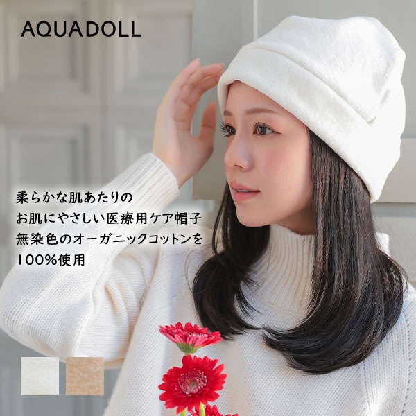 アクアドール オーガニックコットンふんわりあったかワッチ[mdh026] 医療用 抗がん剤 帽子 ぼうし 室内帽子 外出用 就寝用...