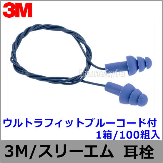 耳栓 3M ウルトラフィットブルーコード付 (1箱/100組) 金属球入り ひも付 340-4007 シリコン 正規品 スリーエム...