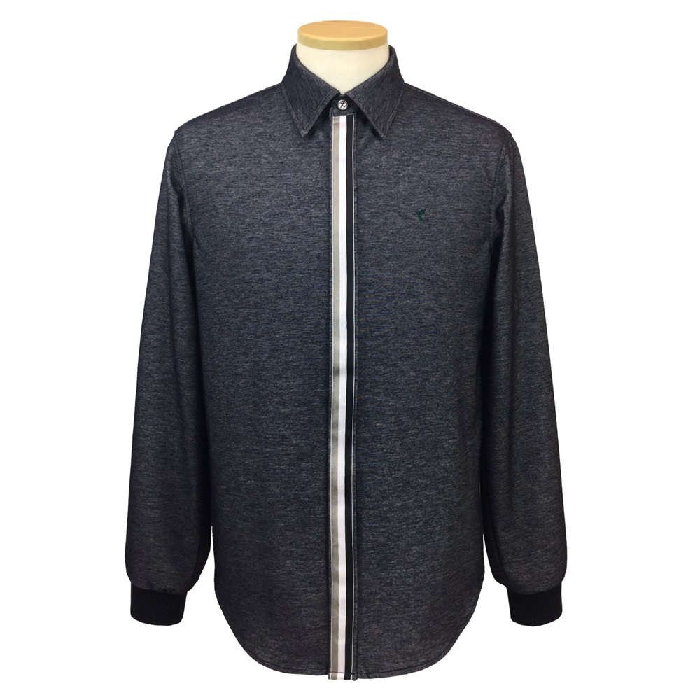 【プレミアム介護ウェア】 スナップボタンで簡単 デニムニット フライフロントスナップシャツ/紳士