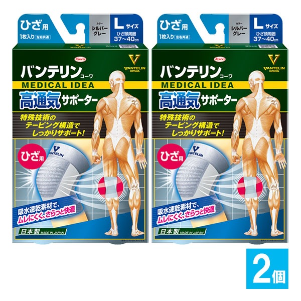 バンテリンコーワサポーター ひざ用 シルバーグレー Lサイズ 大きめ 1枚入×2個セット【Kowa 興和】階段の上がり下りをラクに...
