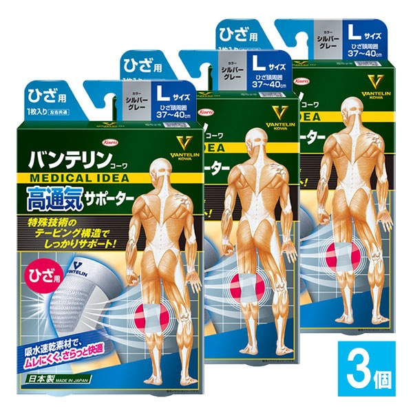 バンテリンコーワサポーター ひざ用 シルバーグレー Lサイズ 大きめ 1枚入×3個セット【Kowa 興和】階段の上がり下りをラクに...