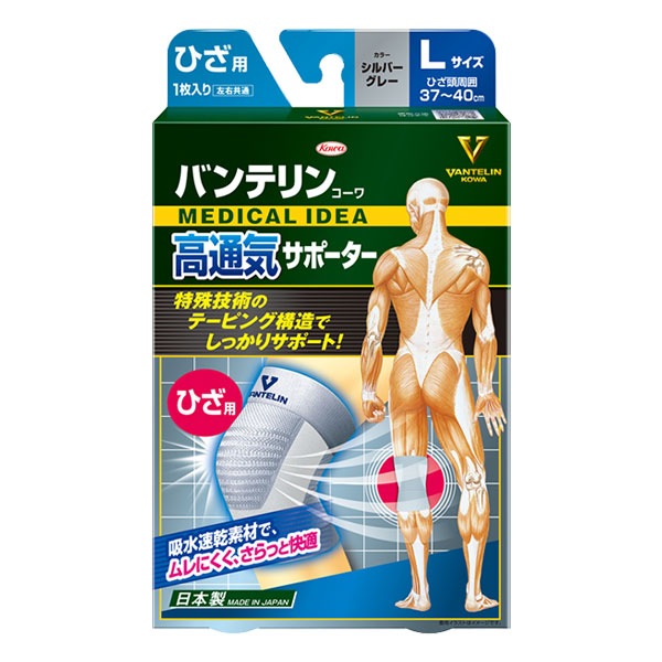 バンテリンコーワサポーター ひざ用 シルバーグレー Lサイズ 大きめ 1枚入【Kowa 興和】階段の上がり下りをラクに 歩行をスム...