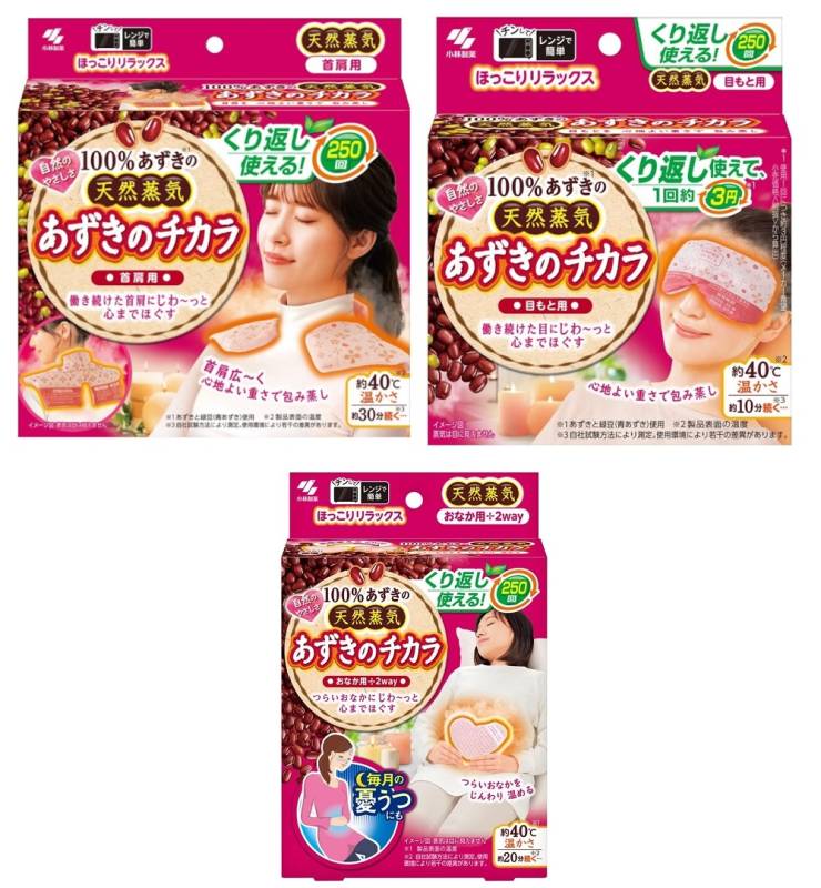 【3種1ずつ 計3個セット】あずきのチカラ 目もと用 + 首肩用 +おなか用 各1ずつ 100%あずきの天然蒸気 約250回 レン...