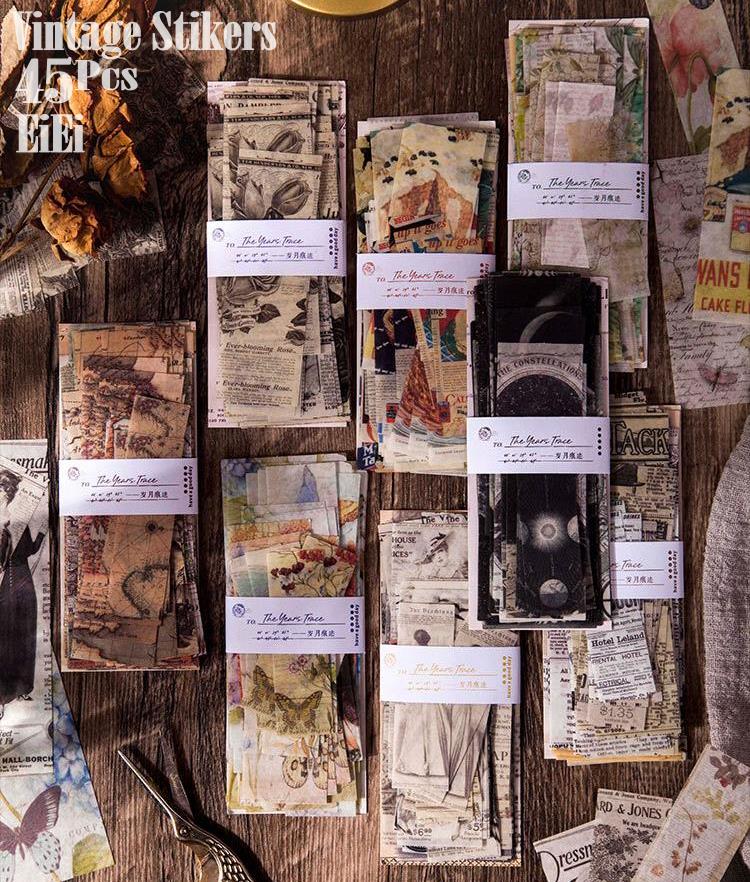 即日出荷 海外シール ヴィンテージ 縦長 コラージュ 素材 45枚 多規格 フレークシール マステ 手帳 デコ アンティーク レト...
