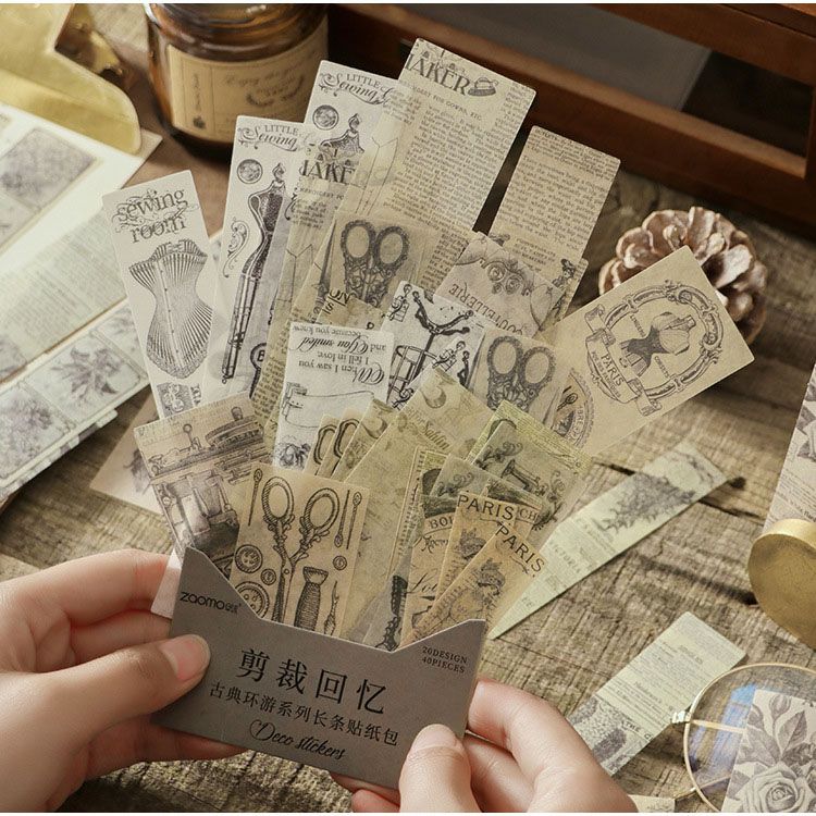 即日出荷 縦長 シール 大きめ 40枚 ヴィンテージ マスキングテープ素材 ステッカー 手帳 デコ コラージュ素材 ジャンクジャー...