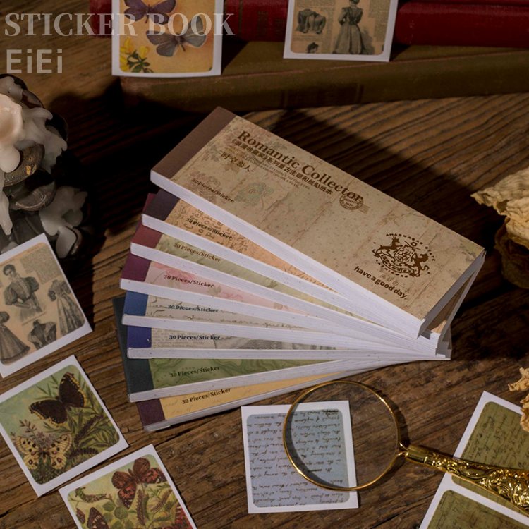 即日出荷 ヴィンテージ シールブック 海外シール 90枚 30ページ コラージュ素材 マステ素材 レトロ 海外ステッカー 手帳デコ...