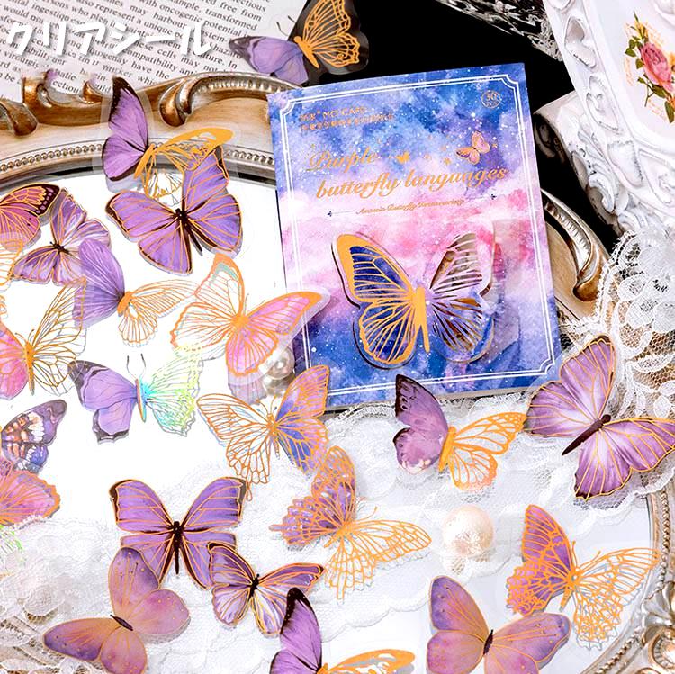 即日出荷 金箔押し 蝶 フレークシール 40枚 幻想 バタフライ クリアシール コラージュ素材 買い得セット 大容量 おしゃれ P...