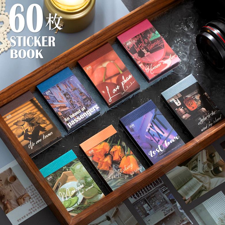 即日出荷 珍しい 透明 シールブック◆60枚 色別 8種◆透明シール 海外シール PET 素材 海外ステッカー 手帳 デコ コラー...