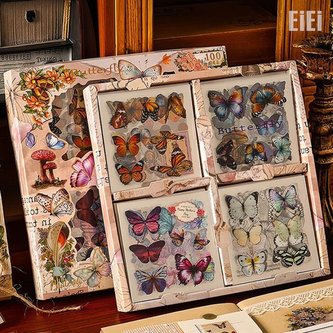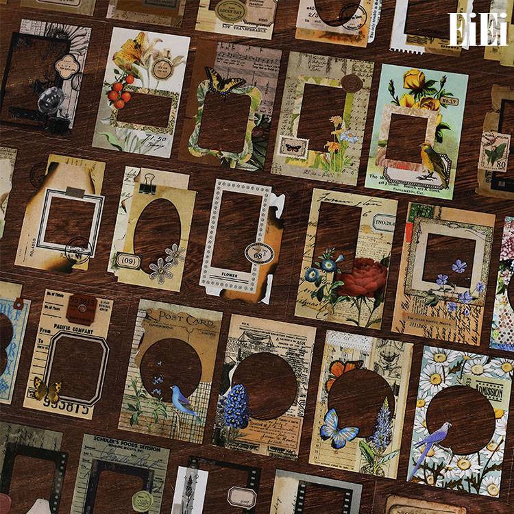 即日出荷 柄違い100シート 型抜き 大容量 透明シール 海外シール 箱入り レトロ フレークシール コラージュ 素材 ダイカット...